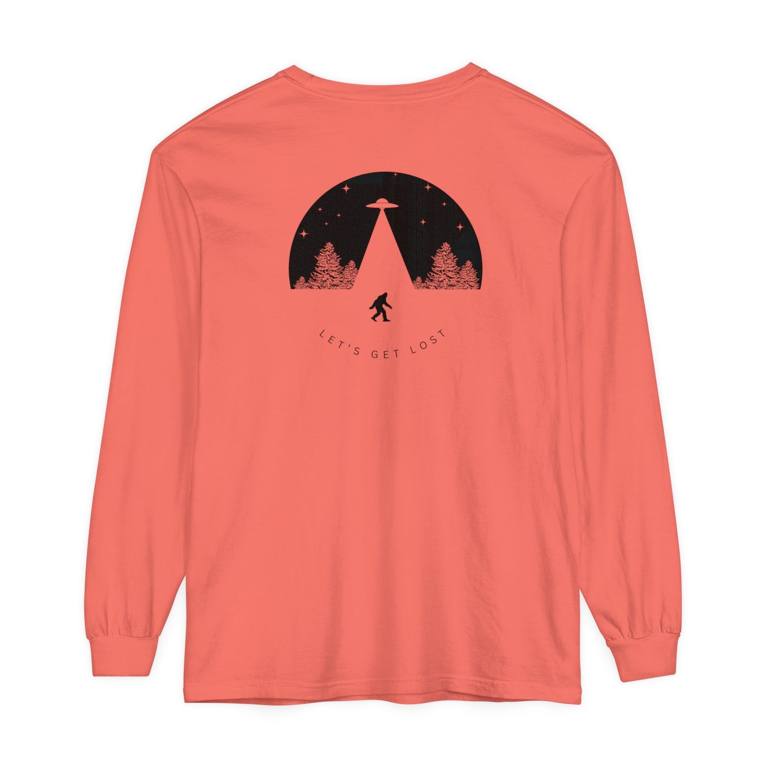 Adult Long Sleeve Tee Let's Get Lost With Bigfoot UFO In The Woods
